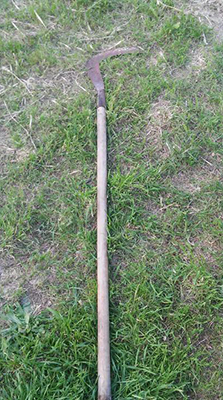 En algunos pueblos llaman guadaña al podón de chamán, pero este segundo nombre es el más popular entre los chamanes ya que es una herramienta que se utiliza para podar o recolectar en altura. Su fabricación es sencilla: una piedra de sílex afilada se une formando ángulo con un palo de madera largo, de unas dos varas. La unión de la piedra y la vara varía en función de la región y la raza; desde atados de cuerda hasta agujeros que atraviesan la piedra y que mantienen la unión mediante calzas. Los chamanes dwaldur tienen podones con la cabeza de hierro. Ellos sí llaman guadañas a sus herramientas.